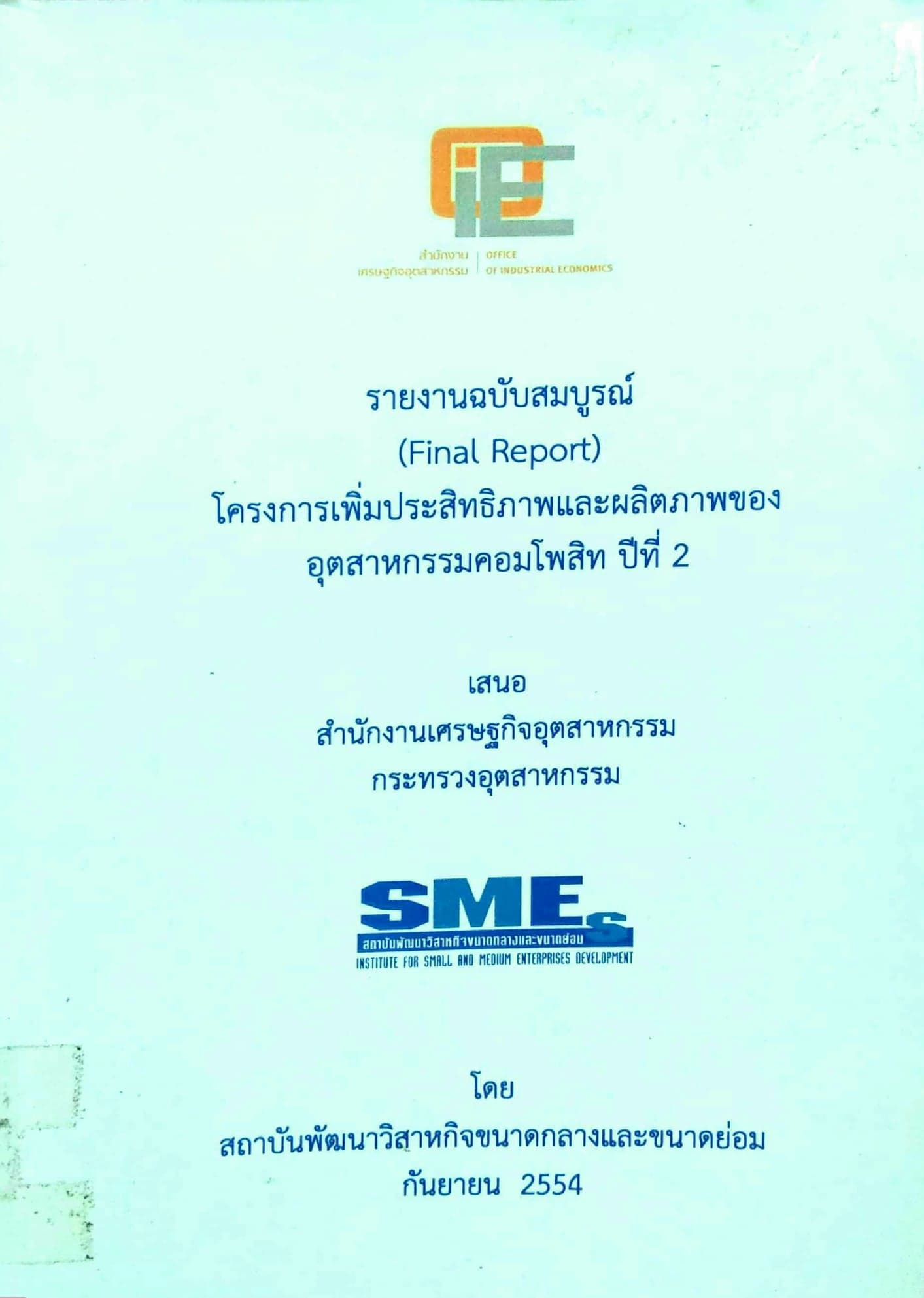 | ชื่อเรื่อง | รายงานฉบับสมบูรณ์ โครงการเพิ่มประสิทธิภาพและผลิตภาพของอุตสาหกรรมคอมโพสิท ปีที่ 2 |