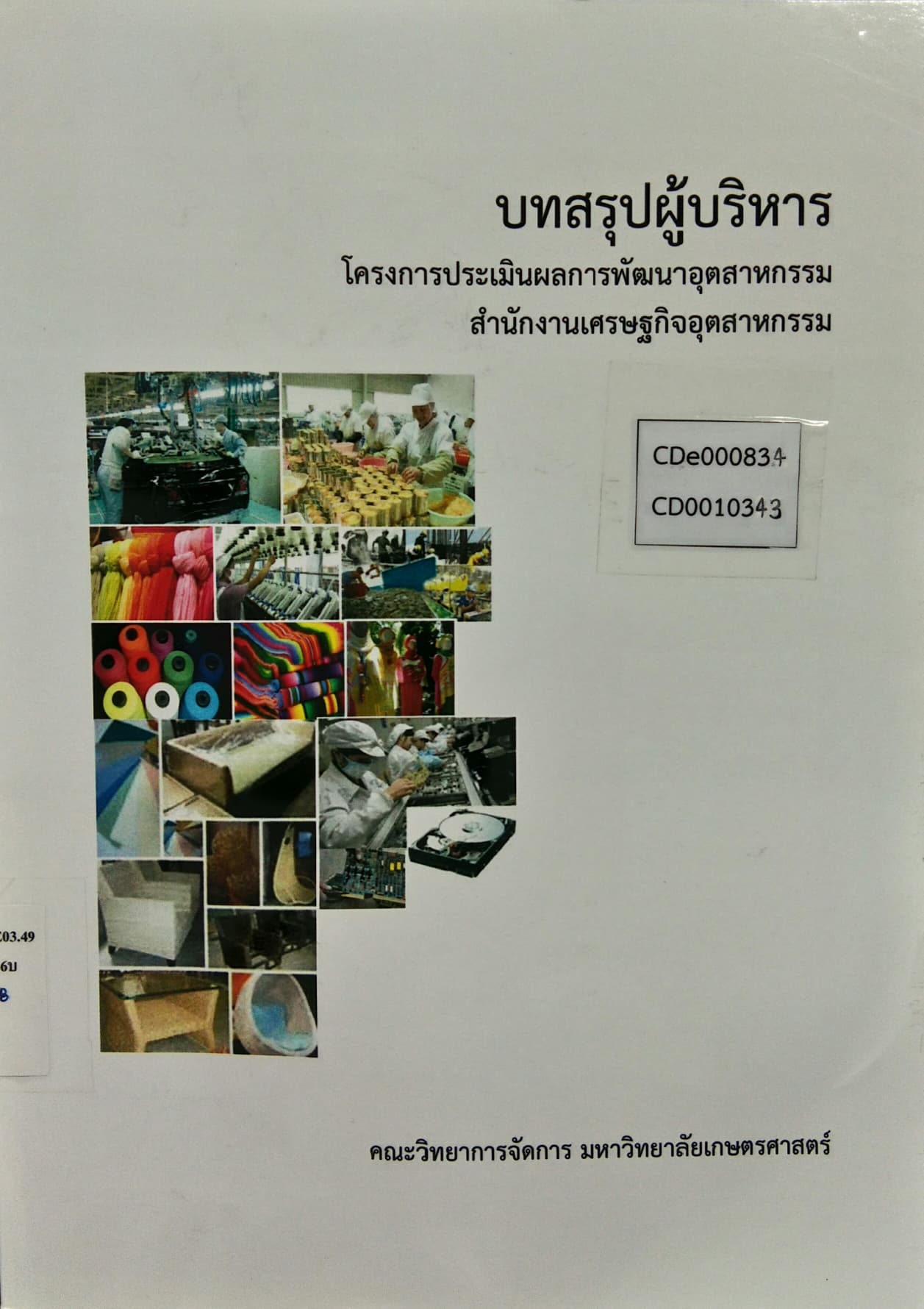 | ชื่อเรื่อง | บทสรุปผู้บริหาร โครงการประเมินผลการพัฒนาอุตสาหกรรมสำนักงานเศรษฐกิจอุตสาหกรรม |