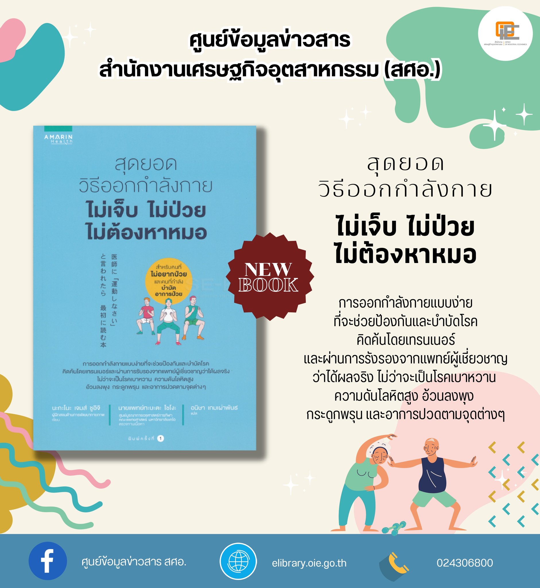 สุดยอดวิธีออกกำลังกาย ไม่เจ็บ ไม่ป่วย ไม่ต้องหาหมอ" เขียนโดย "คุณนะกะโนะ เจมส์ ชูอิจิ" และตรวจทานเนื้อหาโดย "นายแพทย์ทะบะตะ โชโงะ" เล่มนี้ ได้ให้คำแนะนำเกี่ยวกับสุดยอดการออกกำลังกายเพื่อป้องกันโรคและบำบัดโรค ไม่ว่าจะเป็น โรคเบาหวาน โรคอ้วนลงพุง ความดันโลหิตสูง ภาวะไขมันในเลือดผิดปกติ ภาวะความบกพร่องในการเคลื่อนไหว โรคกระดูกพรุน โดยผู้เขียนได้นำเสนอข้อมูลที่น่าสนใจ เทคนิค และวิธีการออกกำลังกายเพื่อดูแลสุขภาพง่าย ๆ ที่ใครก็ทำได้ไว้อย่างน่าสนใจ สำหรับคนที่ไม่อยากป่วยและคนที่กำลังบำบัดอาการป่วยหนังสือเล่มนี้ไม่ควรพลาด!